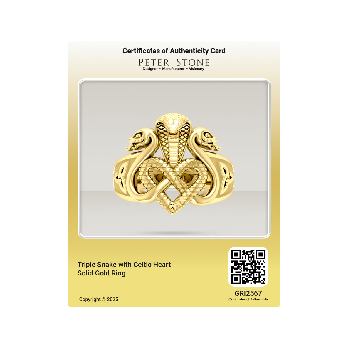 Triple Snake with Celtic Heart Solid Gold Ring GRI2567