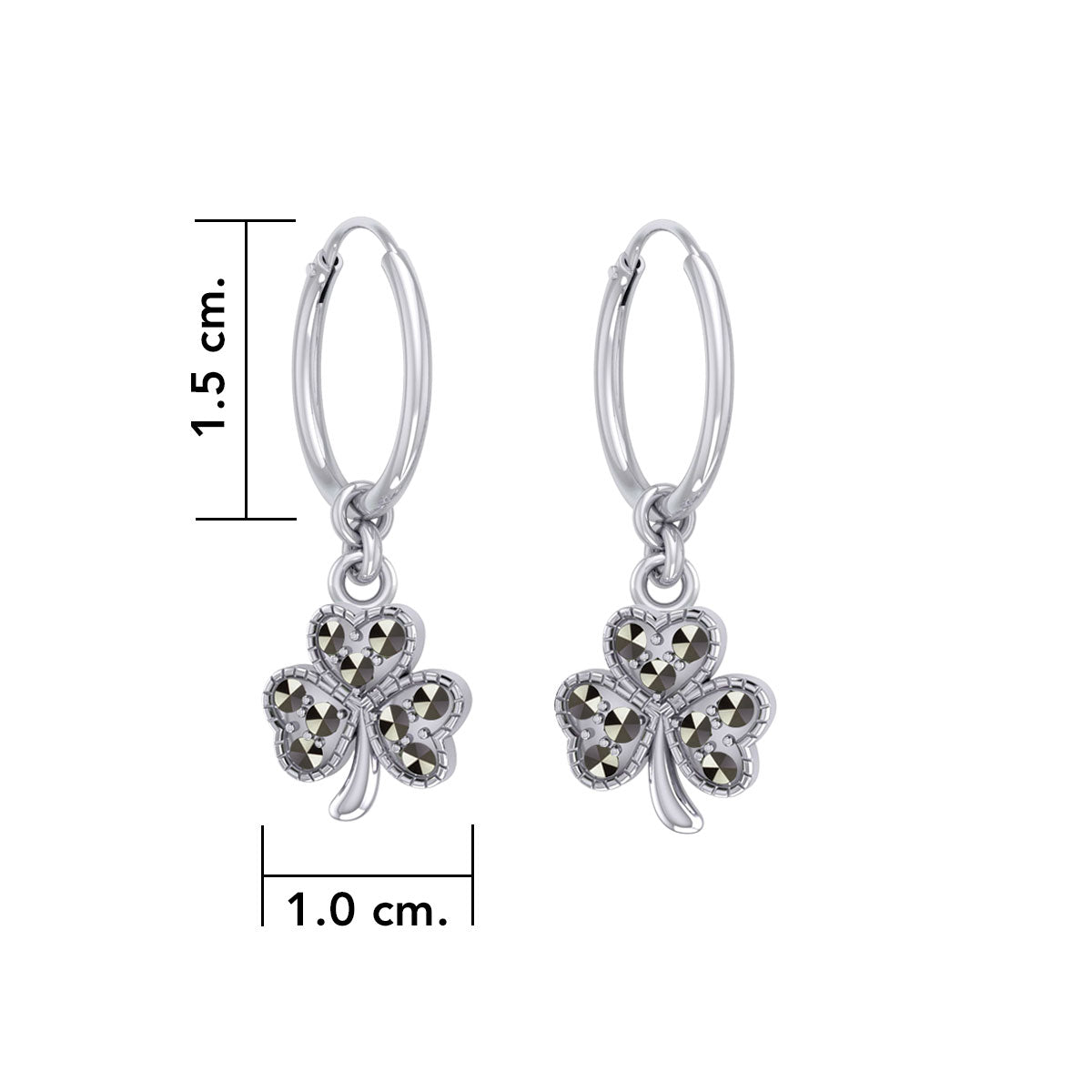 Celtic Shamrock Silver Hoop Earrings with Marcasite TER2108