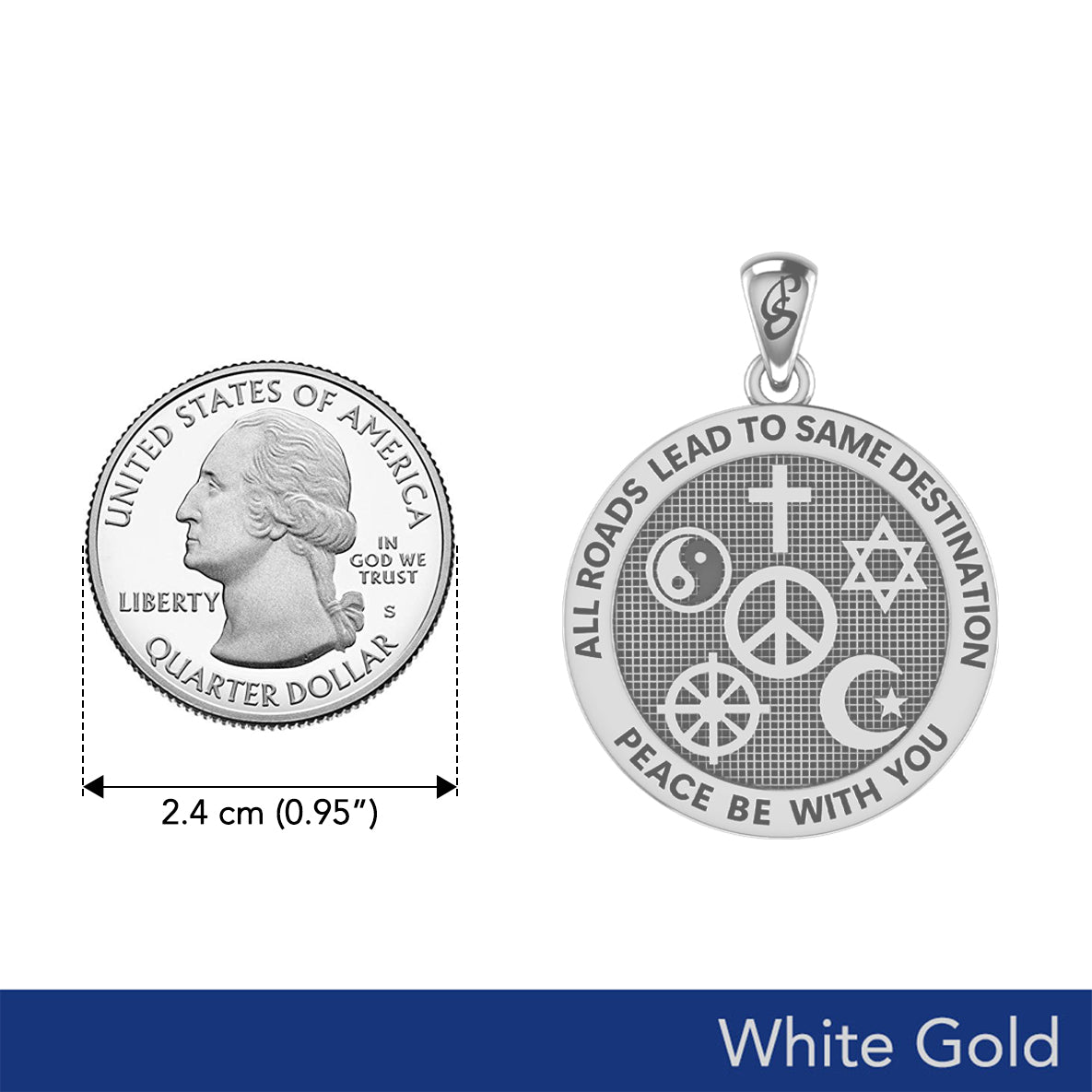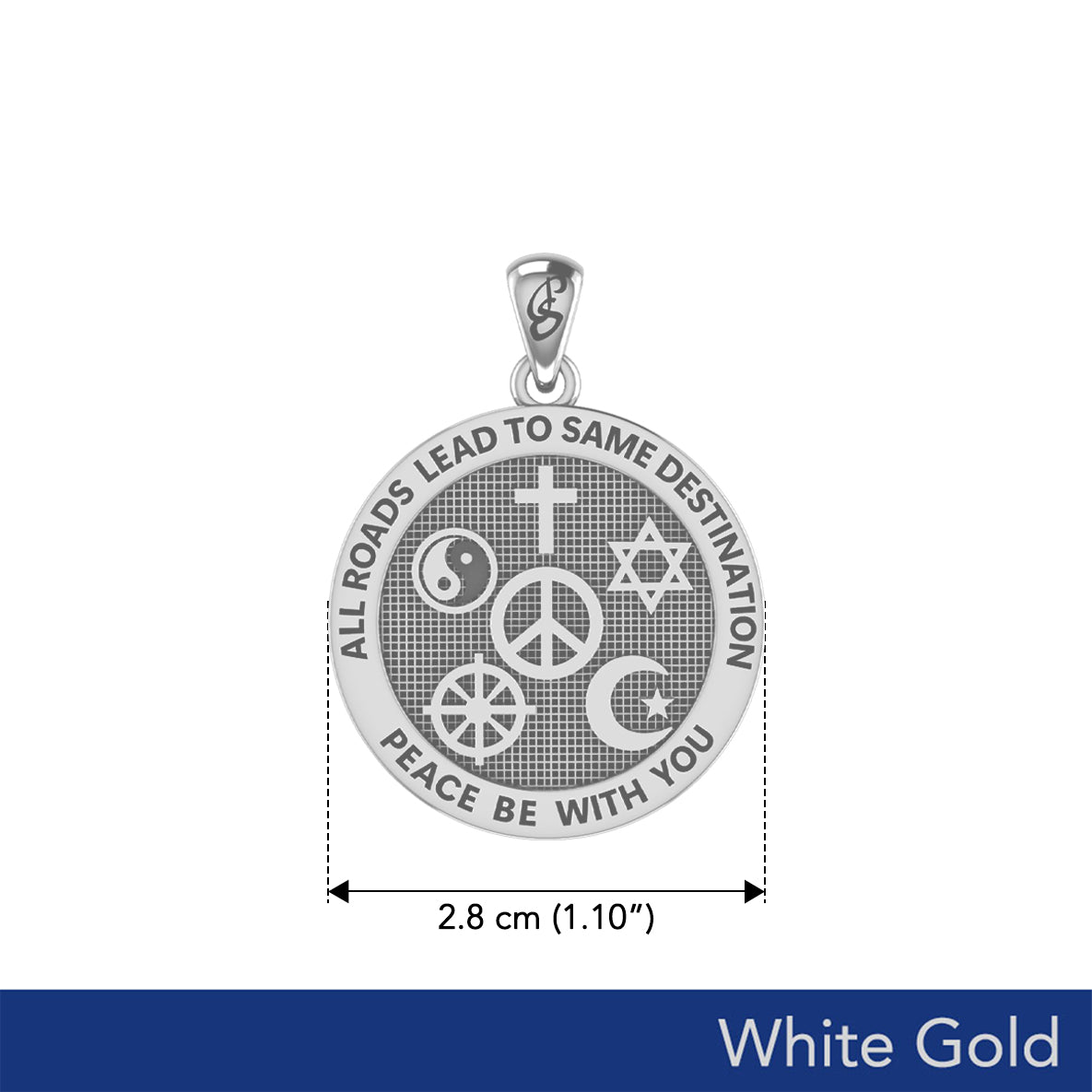 Peace with Faith Symbols Solid White Gold Pendant WPD6360