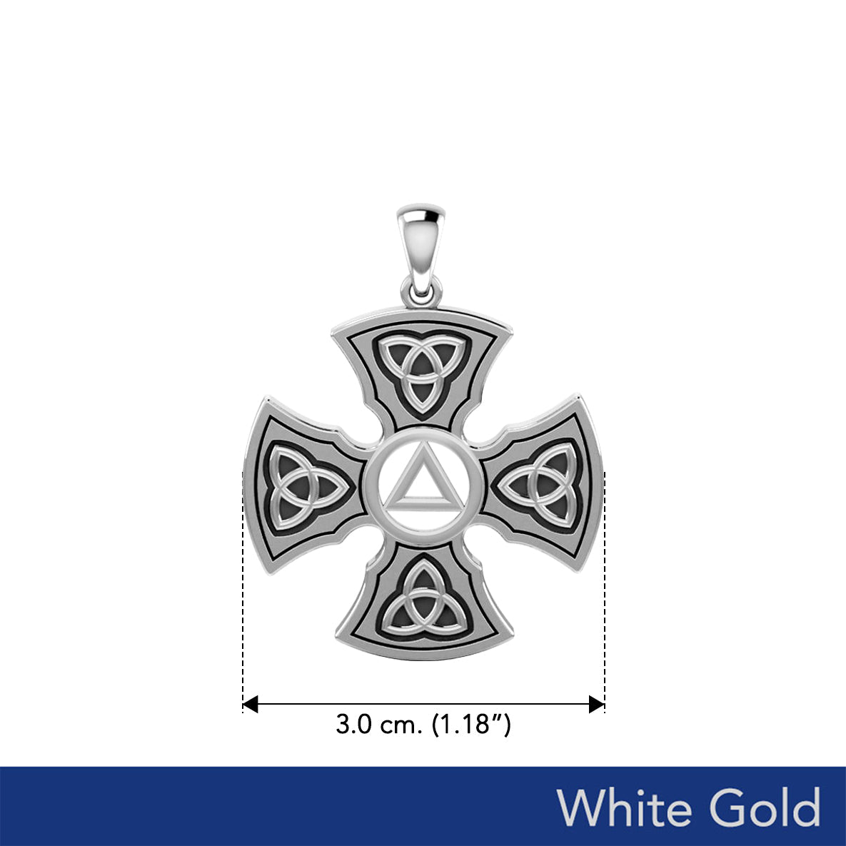 Templar Cross with AA Symbol Solid White Gold Pendant WPD6376