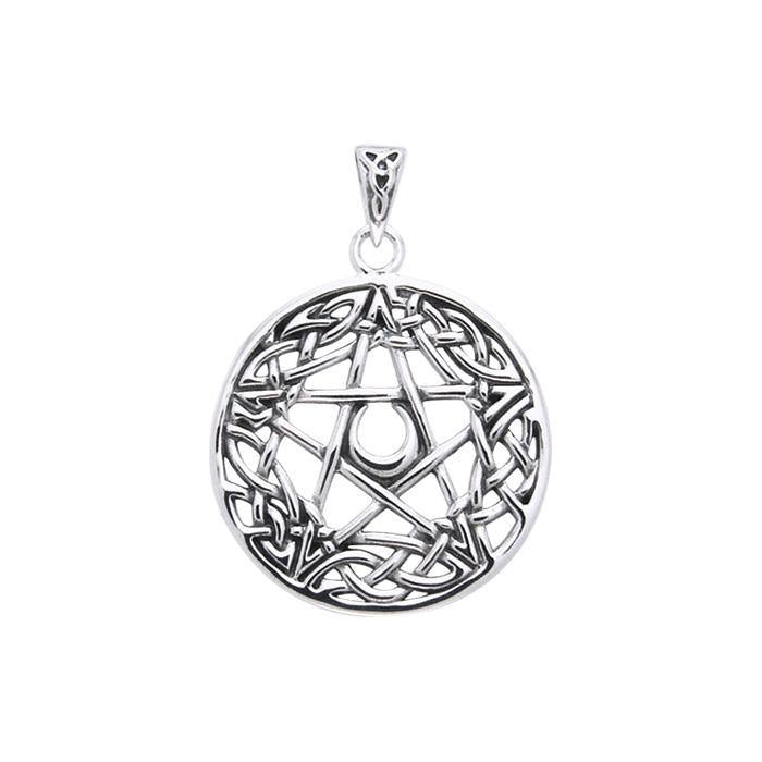 Celtic Knotwork Pentacle Sterling Silver Pendant by Courtney Davis TPD975 This silver pendant is a unique fusion of Celtic design and Pagan tradition with intricate Celtic knotwork serving as the border of the The Star. Designed by renowned artist Courtney Davis. Makes an elegant gift for yourself or someone special!...