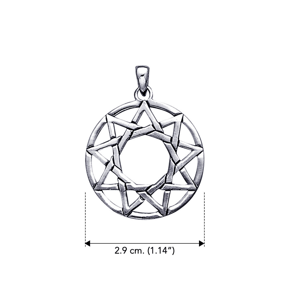The Ninefold Sterling Silver Pendant is a stunning piece of jewelry that embodies elegance, mysticism, and sacred geometry. Crafted from high-quality sterling silver, this pendant features an intricate interwoven nine-pointed star enclosed within a circular frame. The ninefold symbol is often associated with spiritual enlightenment, universal balance, and esoteric traditions, making this pendant a powerful talisman for those drawn to mystical and symbolic meanings.