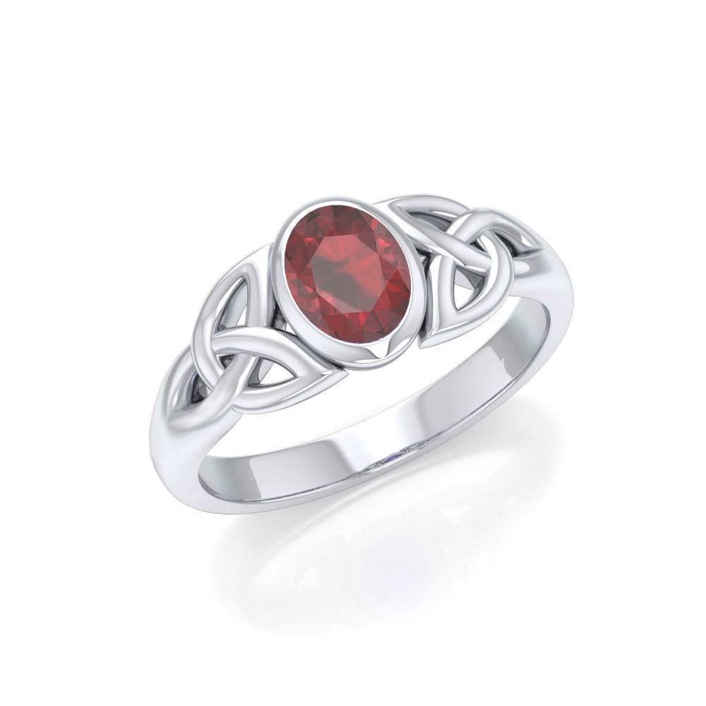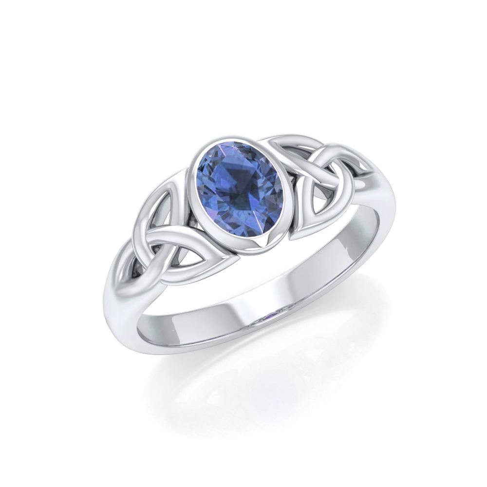 Love in interconnectedness ~ Sterling Silver Celtic Triquetra Knot Ring with Gemstone TR1420