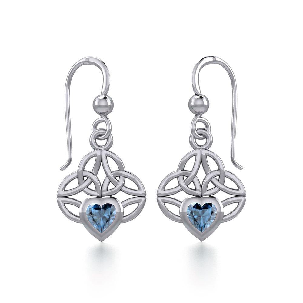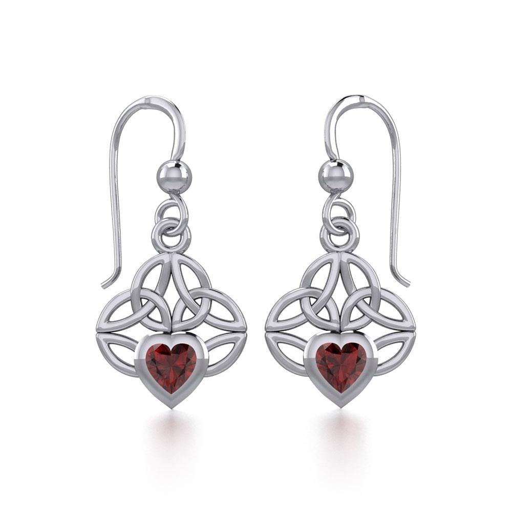 Celtic Knotwork Silver Earrings with Heart Gemstone TER1846