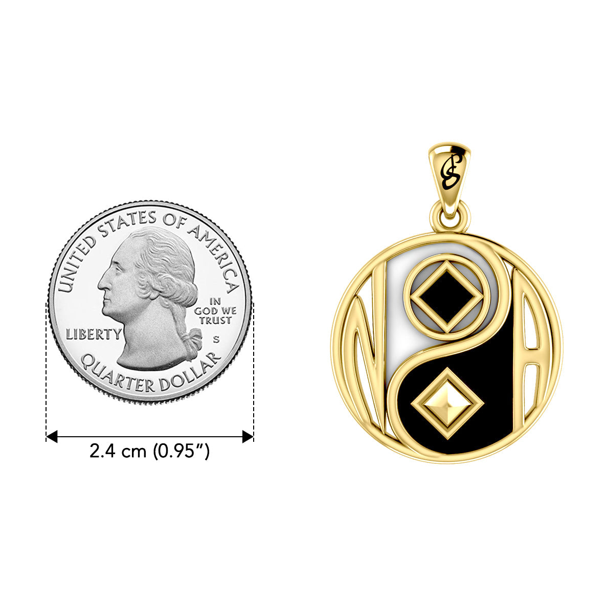 Balancing Yin Yang With NA Recovery Symbol Solid Gold Pendant with Black and White Enamel GPD6352