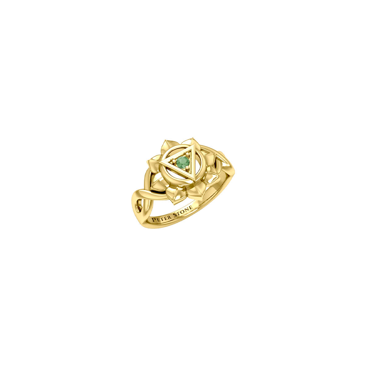 Ignite your inner fire with the radiant energy of the Manipura Solar Plexus Chakra Solid Gold Ring, adorned with timeless Celtic artistry. Symbolizing personal power, confidence, and transformation, the Manipura chakra is beautifully represented by a ten-petaled lotus and an inverted triangle, crowned with a vibrant yellow gemstone at its core—echoing the solar energy that fuels your will and self-esteem. Crafted in solid gold, this empowering ring combines sacred symbolism with intricate Celtic knotwork flowing along the band, representing eternity, unity, and the interconnectedness of all things.