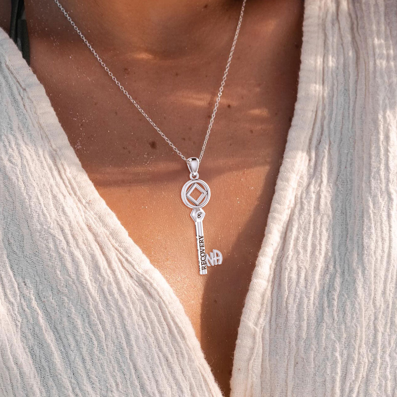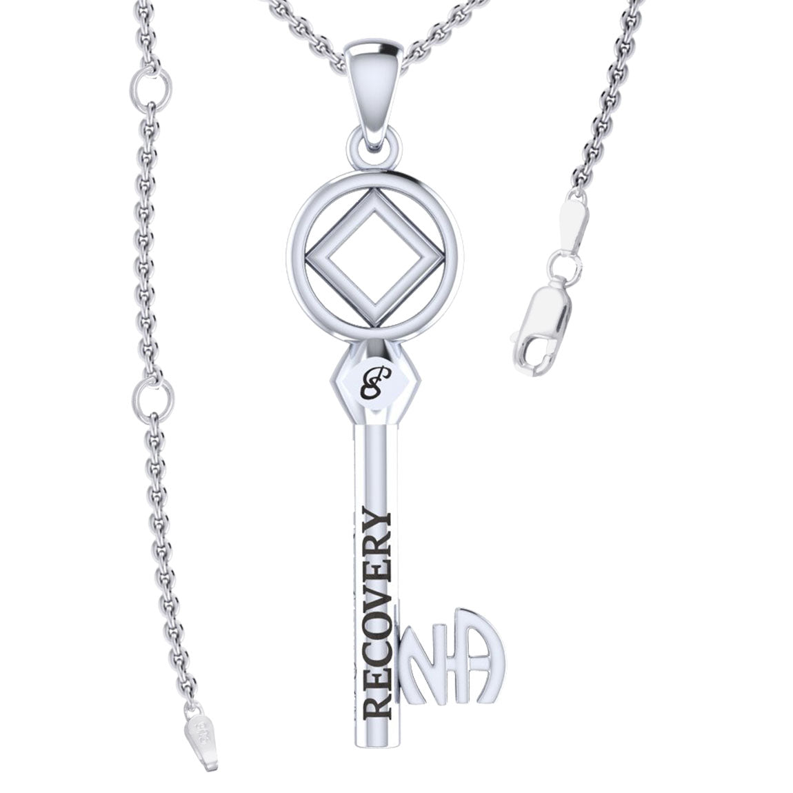 The Peter Stone NA Recovery Key of Encouragement Sterling Silver Pendant is expertly crafted with sterling silver and serves as a symbol of support and hope for those in recovery. This elegant pendant provides both a tangible reminder of progress and a source of encouragement for the journey ahead.